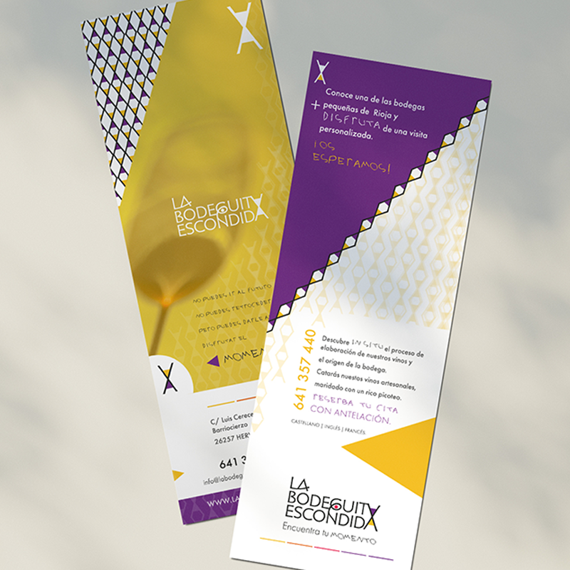 Aplicaciones reales: Tarjetas y flyers que narran la experiencia de vivir la bodega, no solo visitarla, invita a disfrutar EL MOMENTO.